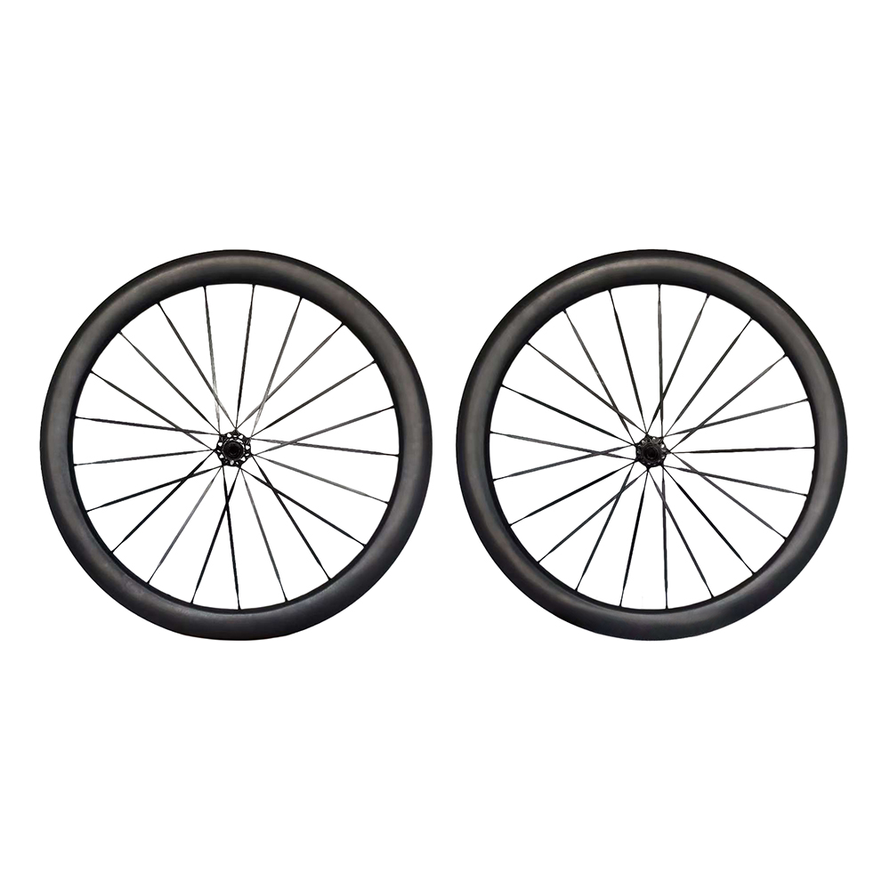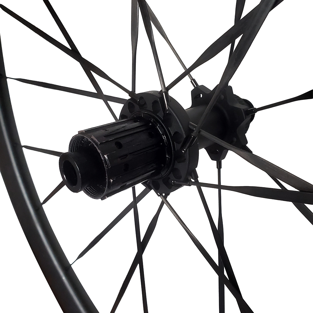 – Jantes carbones de couleur noires mates en 50mm – Moyeux: Roulements céramiques – Support de Cassette – Rayons carbones – Poids: 1.35KG